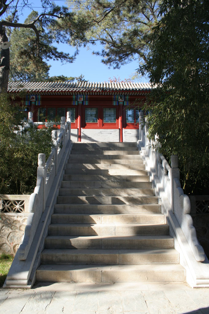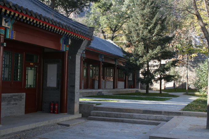 古寺坐东面西,凡三进,后殿中间楹奉佛氏香火,南北两楹供佛学会参修之地;中殿三楹为图书室,南北厢各十楹辟为林泉社憩息之所;前进中间三楹题之日访农草堂;北院群房内拨三楹捐诸农矿部地质调查所以备鹫峰地震研究室职员住宿。
